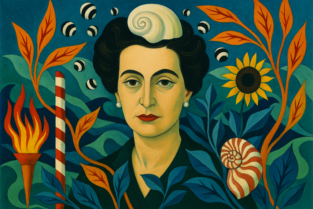 Maruja Mallo fue el nombre que adoptó como artista, pero el verdadero era Ana María Gómez González. Nació en Viveiro (Lugo) en 1902 y falleció en Madrid en 1995. Su larga vida le permitió ser una de las pintoras más prolíficas del siglo pasado, formando parte de la generación del 27. Dimos cuenta en este blog de nuestra admiración por su figura: https://logiaclaracampoamor.com/maruja-eres-mitad-angel-mitad-marisco-salvador-dali/