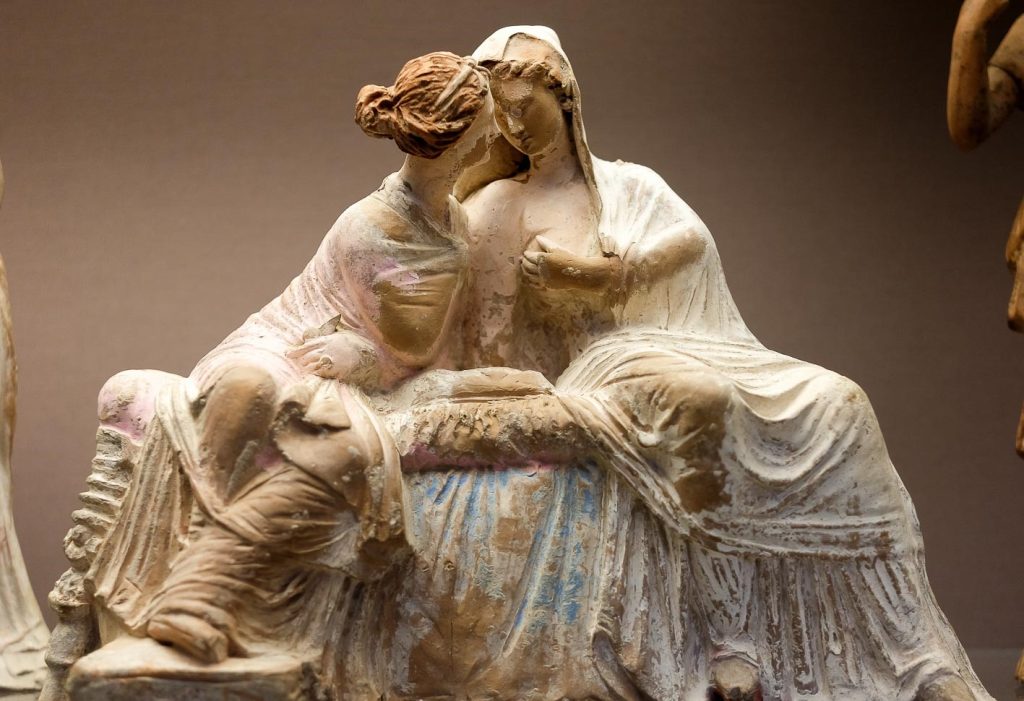 Yéndonos a la mitología encontramos personajes como el de la diosa del vientre Baubo o Yambe que parecen proceder de las diosas de vientre neolíticas. Dentro del conocido mito de Deméter y Perséfone, nos encontramos con el siguiente relato: Deméter inició la búsqueda de su amada hija por toda la tierra sin éxito, provocando en ella la furia y la ira. La diosa lloraba, gritaba, suplicaba a todos, maldijo las tierras fértiles del mundo y todo quedó en la absoluta aridez. Una noche exhausta se desplomó al lado de un pozo y apareció una especie de mujer que se acercó a ella bailando y agitando las caderas como si estuviera en un acto sexual mientras sus pechos brincaban al compás de la danza.